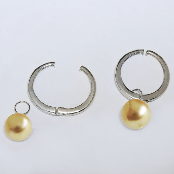 大切な方へのプレゼントにもおすすめです! □ 詳 細 □ 真珠の詳細南洋白蝶真珠 大きさ:10mm 色:ゴールド系 形:セミラウンド真珠のグレード照り:AA 巻き:AA キズ:AA 地金名K14ホワイトゴールド サイズ幅:約2〜2.5mm 厚さ:約1.5〜3mm 内径縦:約16mm 内径横:約15mm チャーム部縦:約16mm 付属品 弊社の品質保証書、専用ケース付き 備考 ※自然光の下で撮影しております。