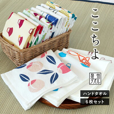 【M】日本製 ここちよ ハンドタオル6枚セット 和風柄 送料無料 ガーゼ 保育園 かわいい 表面ガーゼ地 裏面パイル地 泉州タオル はんかち ハンカチ まとめ買い ガーゼマスク 布マスク 手作り ガーゼハンカチ