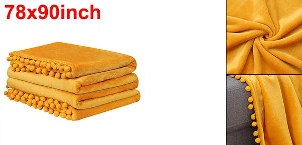 ソウテン uxcell フランネルフリースブランケット?ポンポンフリンジ?柔らかく暖かいマイクロファイバーソファ?豪華な330GSM軽量装飾ソリッドブランケット?ソファソファチェア用 黄 78"x 90"